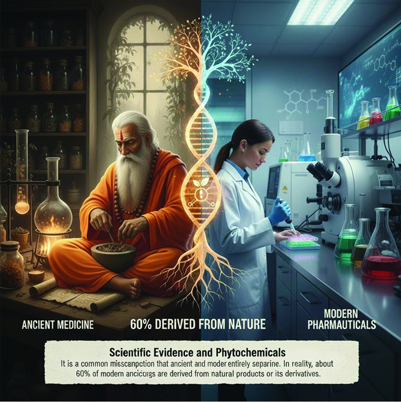 It is a common misconception that ancient and modern medicines are entirely separate. In reality, about 60% of modern anticancer drugs are derived from natural products or its derivatives.